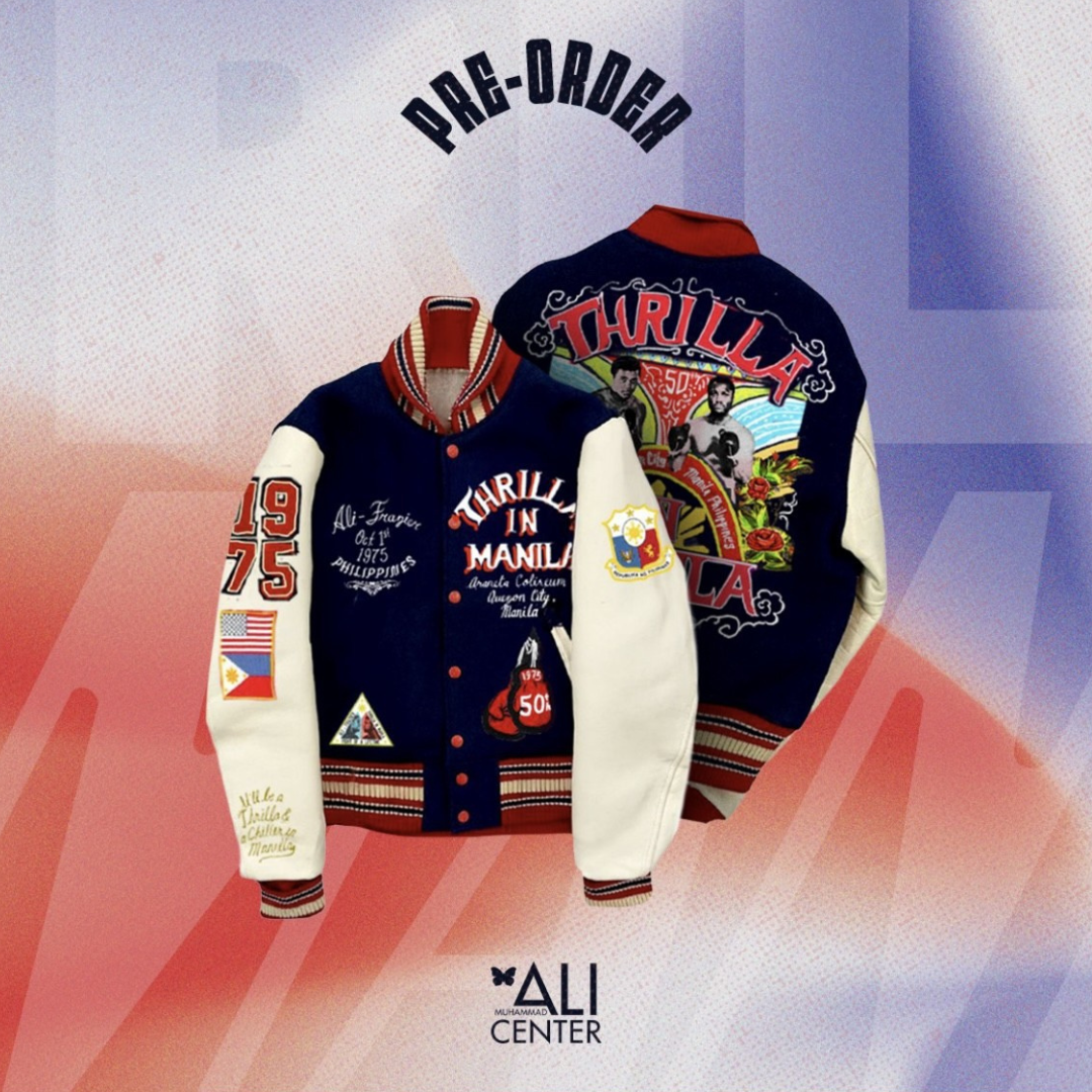 In limited supply, we have these bombastic jackets from Roots of Fight, featuring many iconic photos from the legendary Thrilla in Manila fight- the 50th anniversary of which is this month!